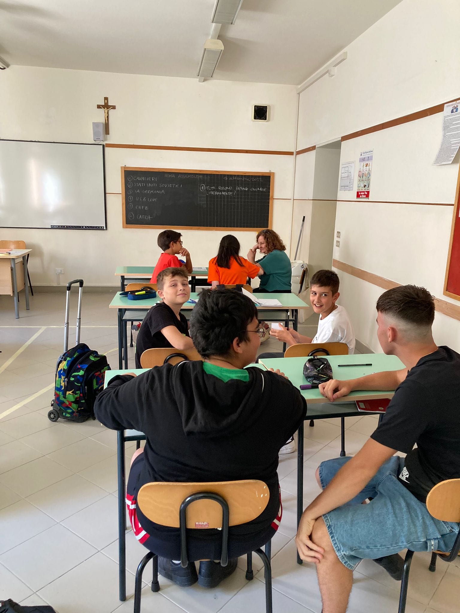 Attraverso una vivace discussione, in un paio di lezioni siamo riusciti ad accordarci per l’utilizzo degli spazi esterni al nostro territorio: la porta, le finestre, l’armadio, la lavagna, il computer e le ambitissime casse.