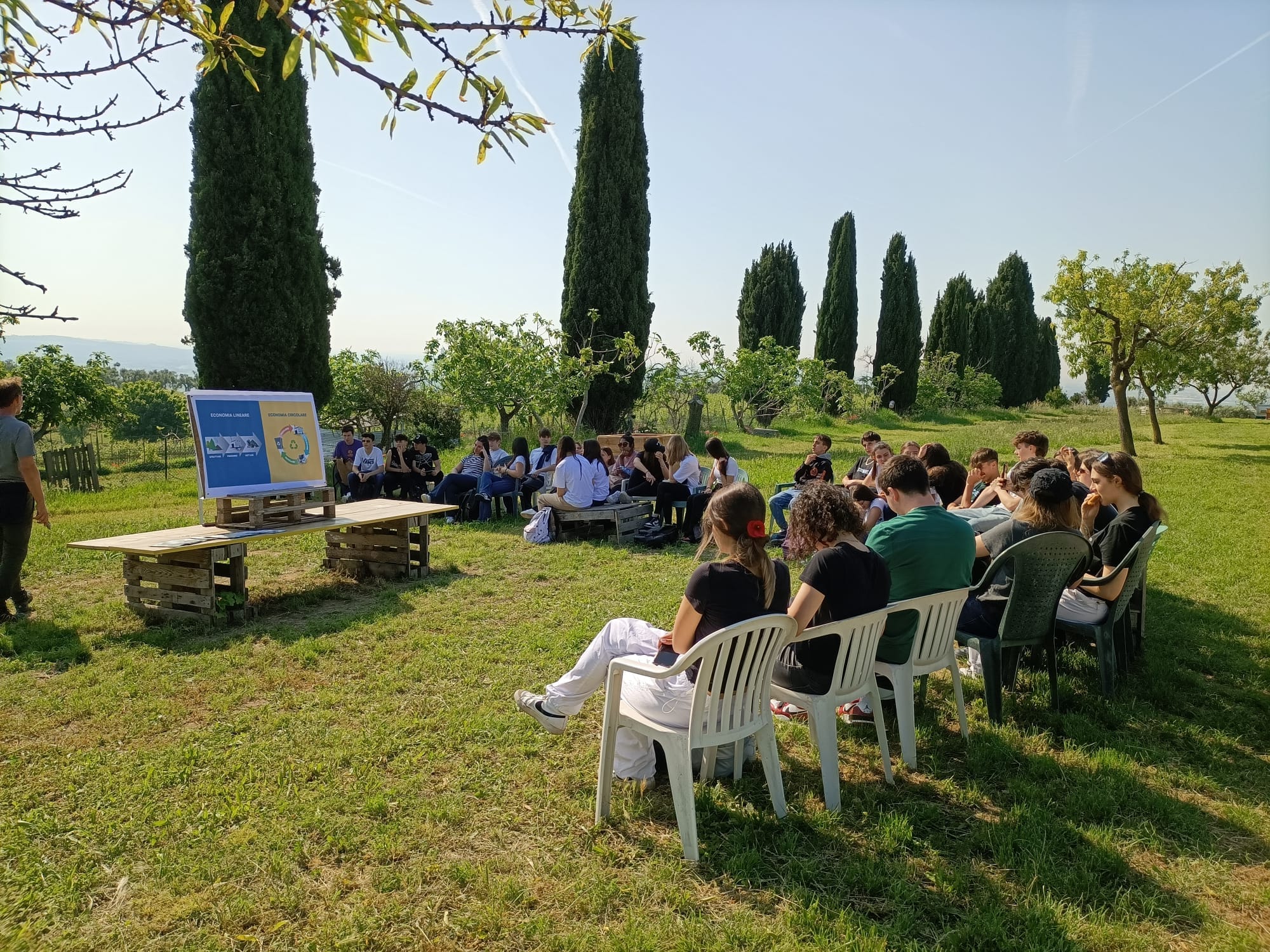 All’ombra hanno ascoltato l’intervento di due tecnici di Amia che hanno illustrato la differenza tra economia lineare e circolare ed hanno evidenziato quanto sia indispensabile per uno sviluppo sostenibile risparmiare, riciclare e riutilizzare.